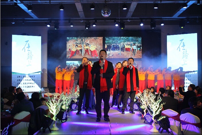 一場(chǎng)氣勢(shì)磅礴的面具舞,帶大家進(jìn)入了演出環(huán)節(jié)。所有節(jié)目都是和順員工精心準(zhǔn)備的,節(jié)目形式多樣,有小品、歌曲聯(lián)唱、舞蹈、樂(lè)器等等,大家個(gè)個(gè)身懷絕技,臺(tái)下掌聲也是連綿不絕。一首《在路上》帶大家進(jìn)入了此次嘉年華的高潮,伴隨著在路上的朗誦,董事長(zhǎng)攜伴隨公司一路走來(lái)的老員工一同上臺(tái),共同唱響和順一路走來(lái)的艱辛與收獲。節(jié)目中還有公司給大家?guī)?lái)的額外福利,QQ搶紅包,真是驚喜不斷!