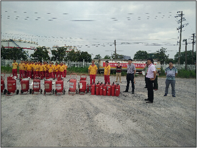 上午8:30演練準時開始,消防官兵對各種滅火器具的使用進行專業(yè)講解和操作演示。演練項目包括初起火災(zāi)撲救、模擬發(fā)油臺提油車輛發(fā)油過程中著火撲救、庫區(qū)儲油大罐火災(zāi)撲救,演練持續(xù)2個小時.整個演練過程指揮有力、分工明確、配合默契、實戰(zhàn)氛圍濃厚。期間,在總公司物流中心領(lǐng)導(dǎo)及油庫管理人員的陪同下,安監(jiān)局陳局長還實地察看了油庫的安全監(jiān)控系統(tǒng),詢問油庫安全生產(chǎn)工作各項措施的落實情況。