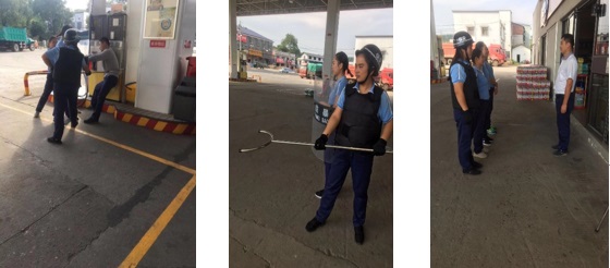 通過本次反恐應(yīng)急演練,增強(qiáng)了加油站員工對突發(fā)暴恐事件的防范意識,提升了大家使用防暴工具的熟練程度,鍛煉了員工之間的配合能力及實戰(zhàn)水平,為加油站今后處置應(yīng)急防恐積累了寶貴的經(jīng)驗。